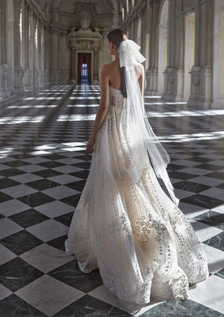 Pronovias' haute couture collection features innovative designs crafted in their Atelier and exclusive Privée line in Barcelona, Spain. Each dress is handmade using artisanal techniques and the finest fabrics and materials. The creation of an Atelier dress takes between 100 and 300 hours.