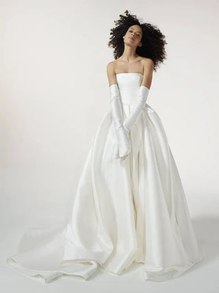 Vera Wang has dressed some of the most iconic celebrity brides throughout history. Think back to Ariana Grande's silk charmeuse open-back dress, Issa Rae, Hailey Bieber's Charmuese slip dress Victoria Beckham, Mariah Carey's off-the-shoulder princess gown, and Kim and Khloe Kardashian's custom Vera Wang wedding looks (to name a few!). After launching her bridal line in 1990, the designer quickly established herself as one of the most iconic designers in both the ready-to-wear and bridal spaces. Vera's gowns are the perfect mix of classic bridal with a modern, fun edge.