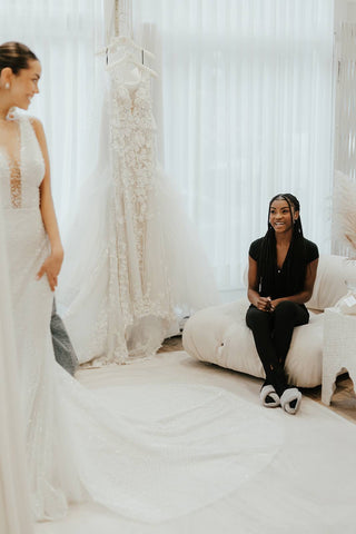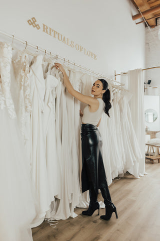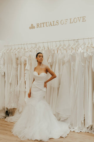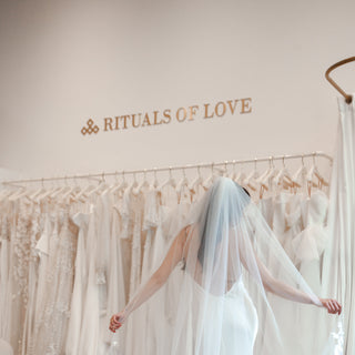 We believe finding your wedding dress should be unforgettable. It starts with a fun, intimate experience in the shop, surrounded by your loved ones, and ends with the perfect dress that makes you feel special. We love seeing the full circle moment from when you first walk through our doors to sharing your beautiful wedding photos with us. At Rituals of Love it’s not just about the dress, it’s about celebrating you!